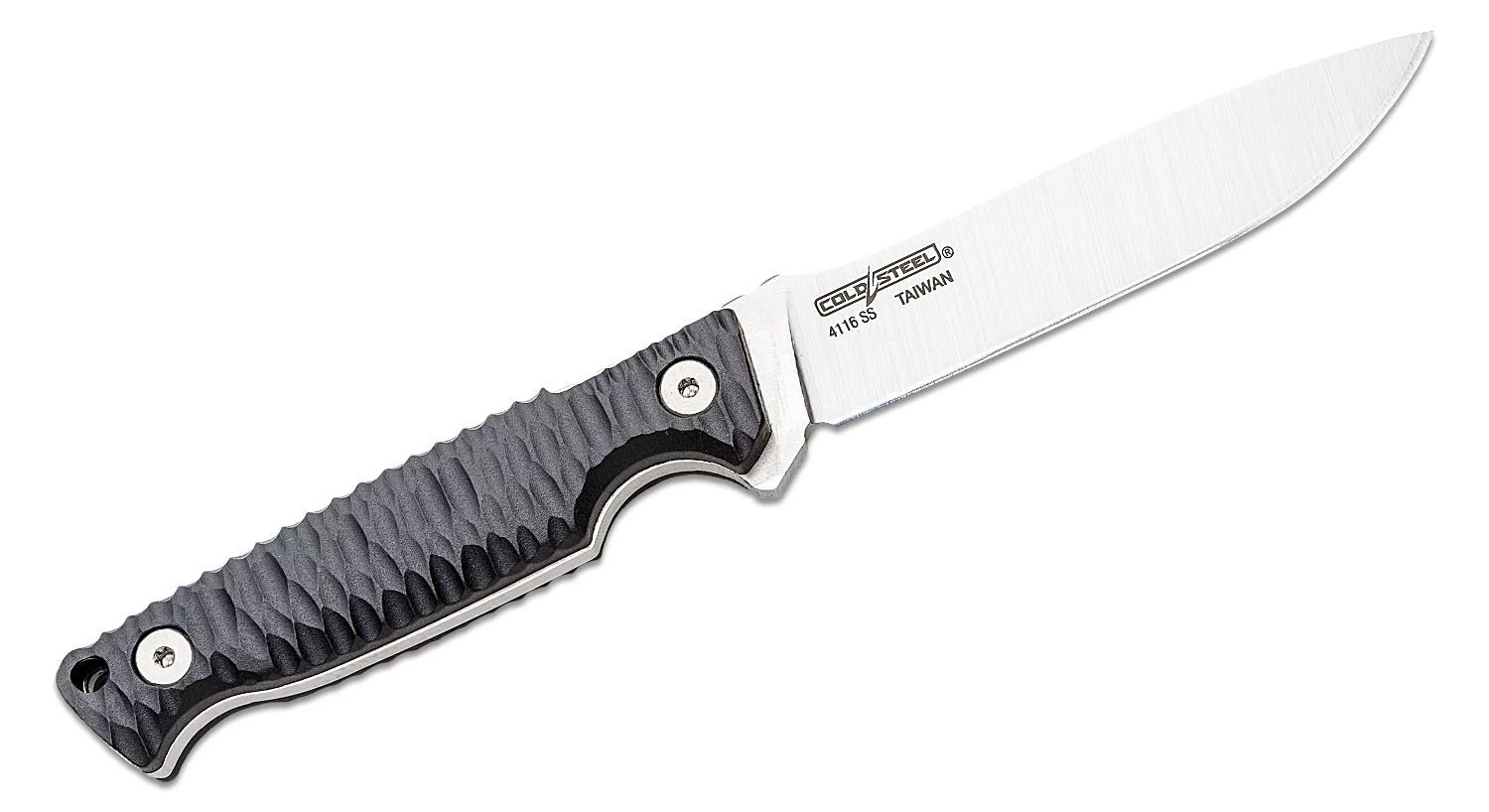 Die Klinge ist aus rostfreiem Stahl 4116 gefertigt. Die strukturierten GFN-Klingen und die Einfassung auf der Rückseite bieten einen sicheren Griff. Am Ende des Griffs befindet sich ein Loch für ein Schlüsselband.
