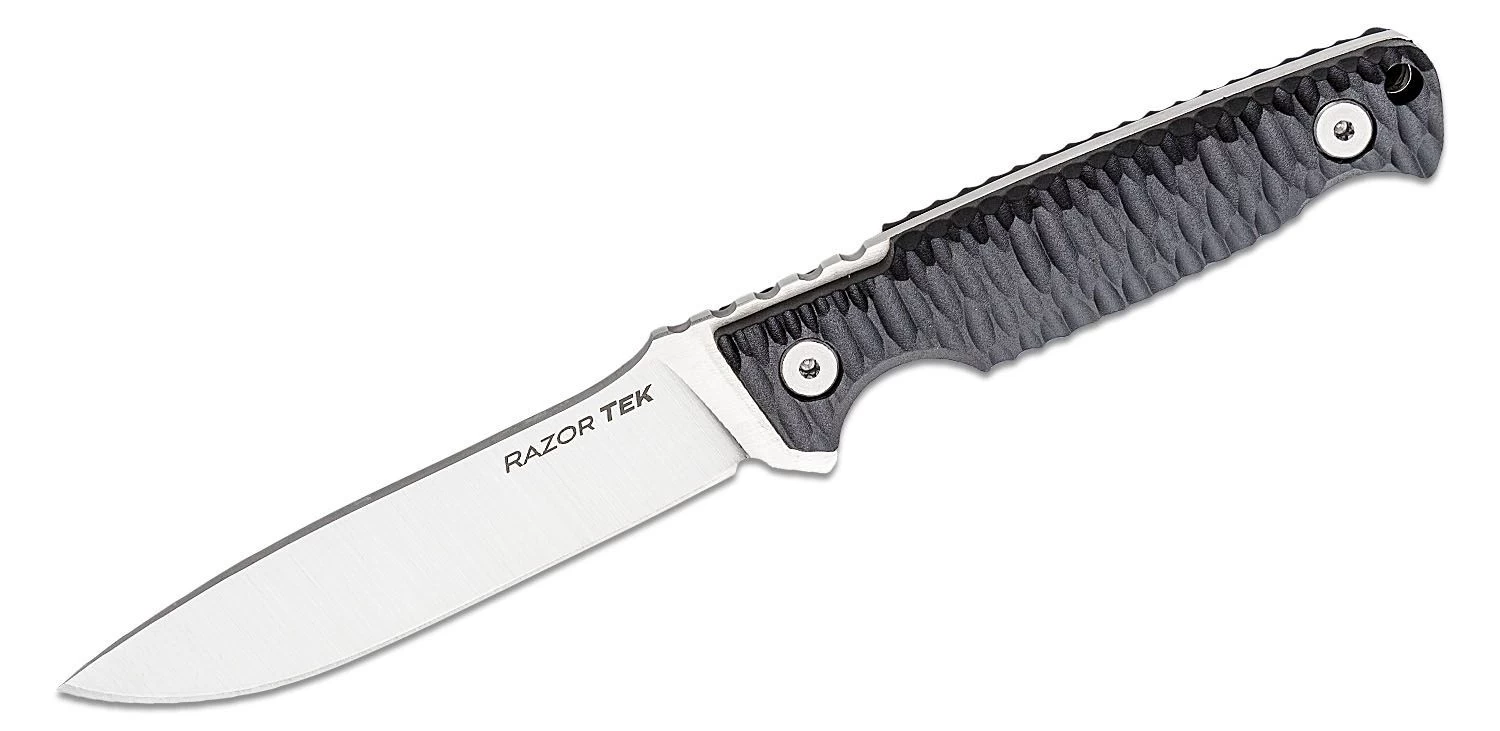 Das Razor Tek Messer mit feststehender Klinge wurde für eine Vielzahl von Aufgaben entwickelt. In erster Linie als EDC-Messer für diejenigen gedacht, die eine feststehende Klinge einer Klappklinge vorziehen. Die Klingenform eignet sich für vielseitige Einsätze wie taktische Aufgaben, Bushcraft, Kleinwild-Feldarbeit und mehr.
