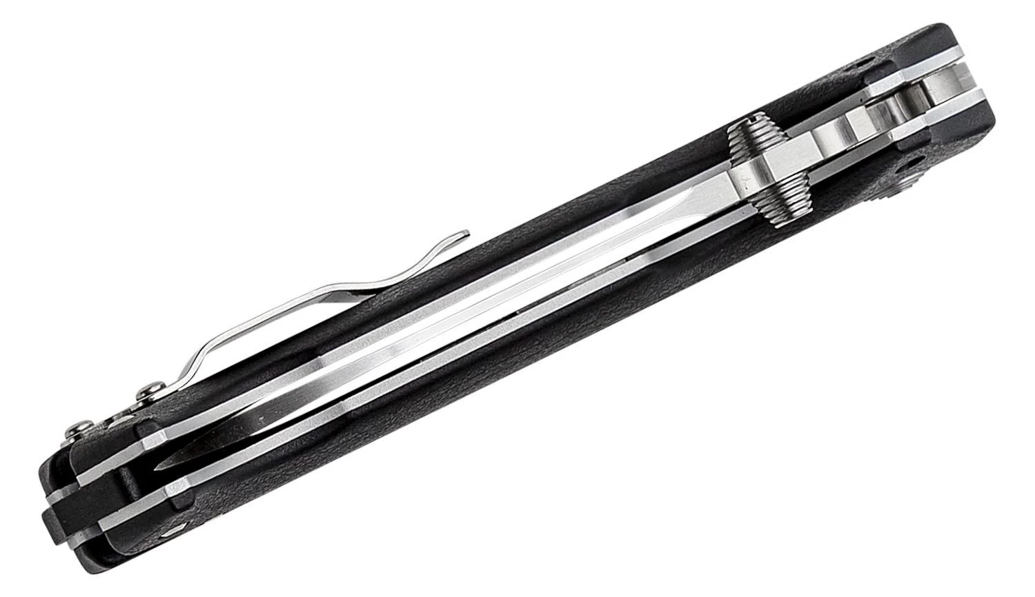 Die Klinge aus hochwertigem japanischem Aus-10A-Stahl wird mit dem Daumen über einen Stift an der Klinge geöffnet. Er wird durch den patentierten Tri-Ad Lock in der offenen Position gehalten. Der Griff ist aus GFN-Material gefertigt. Am Ende des Griffs befindet sich ein Loch für ein Schlüsselband. Das Messer ist mit einem Clip zum sicheren Tragen in einer Tasche ausgestattet.
