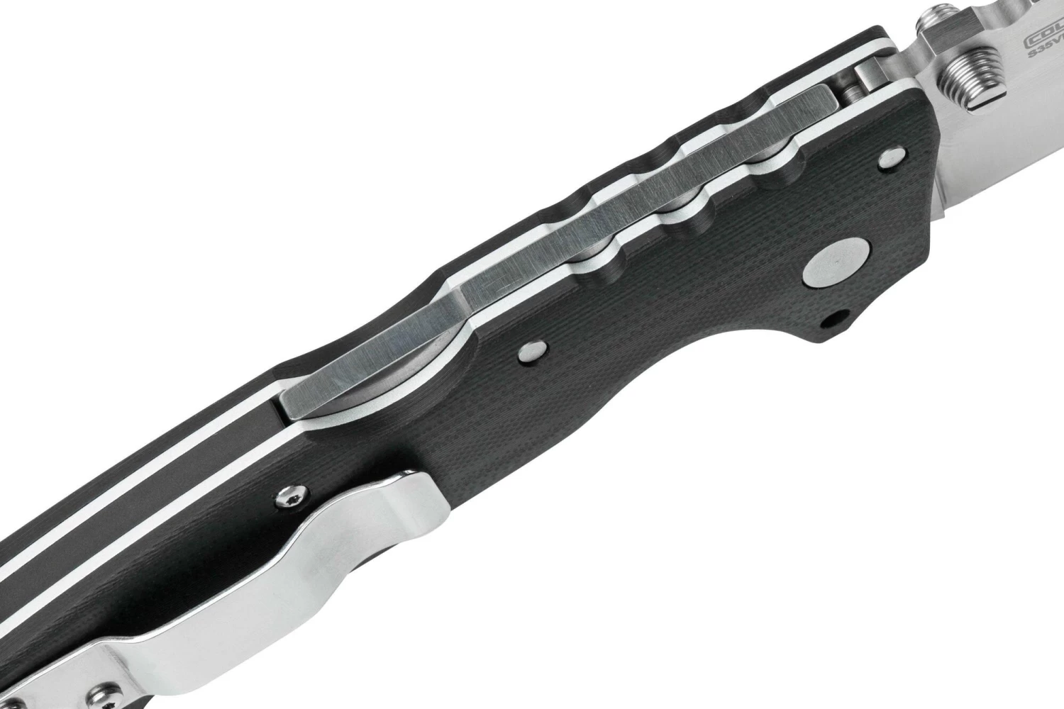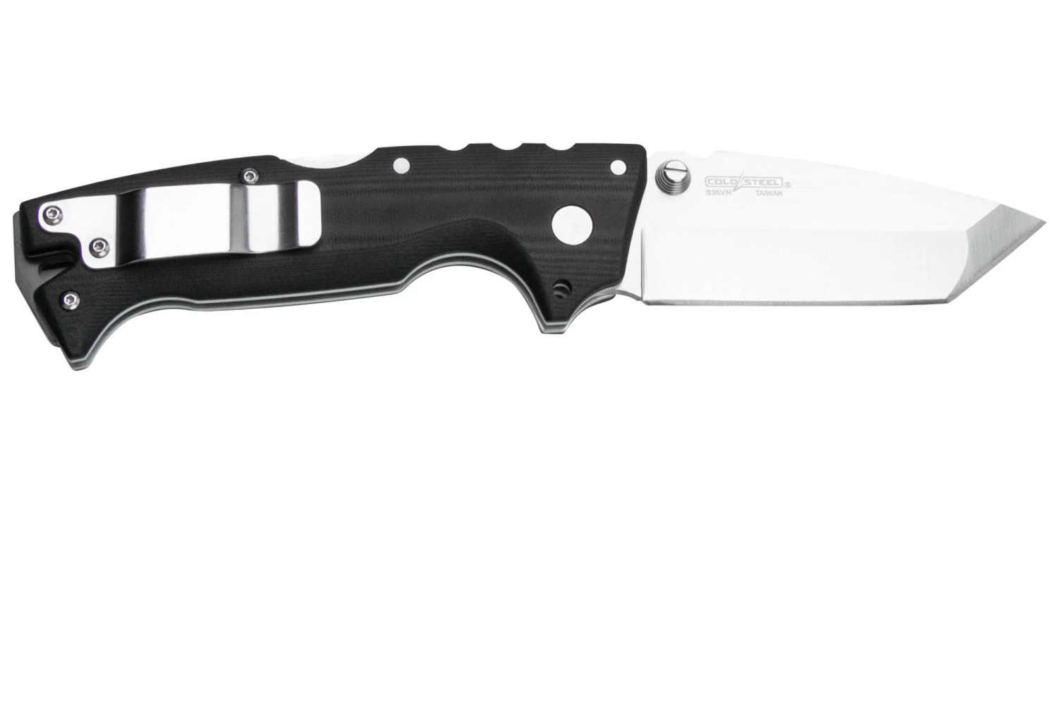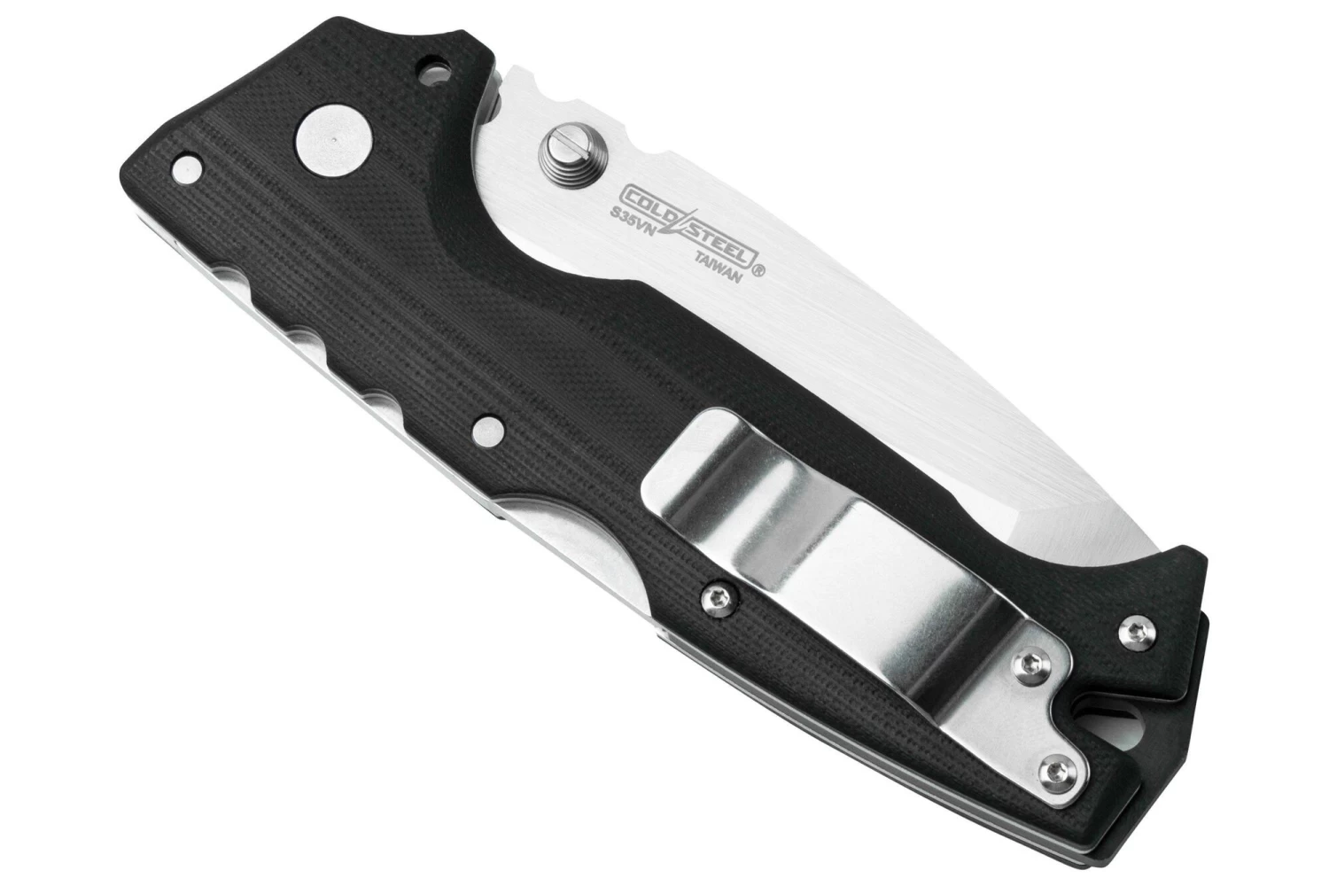Die Klinge aus hochwertigem CPM S35VN-Stahl wird mit dem Daumen über einen Stift an der Klinge geöffnet. Er wird durch den patentierten Tri-Ad Lock in der offenen Position gehalten. Der Griff ist aus G10-Material gefertigt. Am Ende des Griffs befindet sich ein Loch für ein Schlüsselband. Das Messer ist mit einem Clip zum sicheren Tragen in einer Tasche ausgestattet.