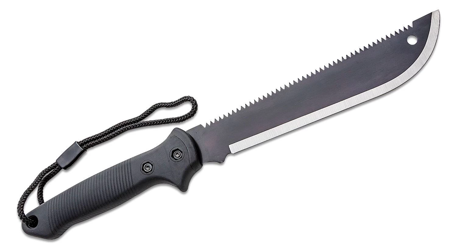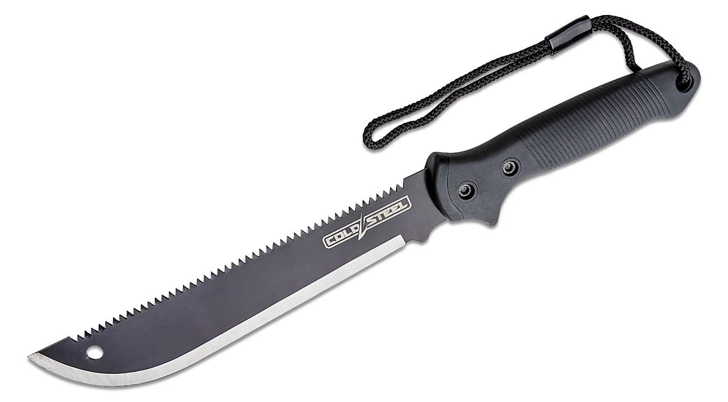 Die Axis Machete von Cold Steel ist eine leichte Machete, die die Fähigkeiten eines großen Bushcraft-Messer behält. Die Klinge wird zur Spitze hin etwas breiter, was sich auch auf den Schwerpunkt und die Hackbewegung auswirkt. Auf der Rückseite befindet sich eine Holzsäge.