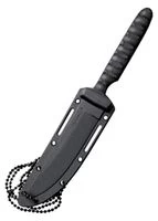 Cold Steel Drop Point Spike, Halsmesser von Cold SteelMit der Spike-Serie setzt Cold Steel neue Maßstäbe für Halsmesser! Diese schlanken, leichten und äußerst robusten Neck Knives verfügen über rasiermesserscharfe Klingen mit sog. „Zero-Ground“ Schliff und stark ausgekehlte, strukturierte Griffschalen, die einen bequemen und festen Halt sichern.Das Parierelement sorgt dafür, dass Zeigefinger und Daumen nicht nach vorn in Richtung Klinge rutschen und geschützt bleiben, während die strukturierte Oberfläche aus G-10 Imitat auch bei kalten, nassen und glitschigen Händen eine hervorragende Griffigkeit bietet.Diese Nackenmesser sind in vier unterschiedlichen Klingenausführungen erhältlich (Bowie, Drop Point, Tanto und Tokyo). Sie bieten all die Zähfestigkeit einer einteiligen Konstruktion aus massivem Stahl (sind sogar stärker als jegliches taktisches Klappmesser und können selbst mit einigen Stiefelmessern rivalisieren), bleiben dennoch leicht genug, um den ganzen Tag mühelos getragen werden zu können.Zur noch besseren Aufbewahrung und Sicherheit wird jedes Neck Knife der Spike-Kollektion mit einer brandneuen Secure-Ex Scheide geliefert. Die Spikes sind extrem leicht (Messer und Scheide wiegen zusammen ca. 85 g!) und können bequem rund um die Uhr um den Hals getragen werden. Als Trageband ist eine schwarze Kugelkette im Lieferumfang enthalten. Dank des neuen Designs der Scheide, das mit dem Tek-Lok™ Tragesystem kompatibel ist, können diese Messer außerdem am Hosenbund oder am Gürtel getragen werden.Details für das Drop Point Spike: – Klingenmaterial: Deutscher Edelstahl 4116 – Gesamtlänge: ca. 20,4 cm – Klingenlänge: ca. 10,2 cm – Klingenstärke: ca. 3 mm – Griff: ca. 10,2 cm lang, aus G-10 Griv-Ex Imitat – Inkl. Secure-Ex Scheide mit Kugelkette als Trageband – Gewicht: ca. 65 g – Cold Steel Artikelnummer: 53NCC Die folgenden Ausführungen sind ebenfalls erhältlich: – Bowie Spike (CST-53NBS) – Tanto Spike (CST-53NCT) – Tokyo Spike (CST-53NHS)