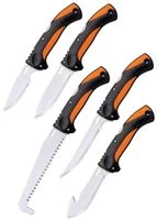 Cold Steel Feststehendes Messer Click N Cut JagdsetFeststehendes Messer Click N Cut Jagdset Das Click-N-Cut Field Kit ist eine großartige, leichte Option für alle Outdoor- Fans, die ihr Gepäck möglichst leicht halten wollen, ohne auf Qualität verzichten zu wollen. Mit 5 austauschbaren Klingen und einem komfortablen Griff ist das Click-N-Cut Jagdset die perfekte Option für Jäger und Angler. Im Lieferumfang ist eine Tasche enthalten. Details: – Klingenmaterial: Edelstahl 4116 – verschiedene Klingenlängen und Formen: – Caping-Klinge, ca. 8,9 cm – Skinning-Klinge, ca. 10,2 cm – Allzweckklinge: ca. 10,2 cm – Ausbeinklinge: ca. 12,7 cm – Knochensäge: ca. 15,2 cm – Gewicht: ca. 73,7 g bis 93,6 g – Klingenstärke: ca. 1,5 mm – Cold Steel® Artikelnummer: CS-CC-FLDKIT