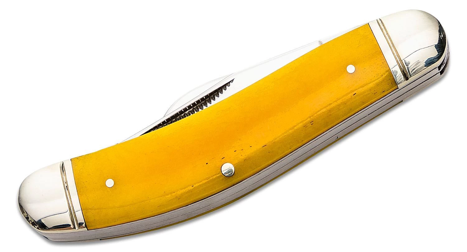 Die Klingen bestehen aus rostfreiem 8Cr13MoV-Stahl, der leicht zu schärfen ist. Sie öffnen sich mit einer Kerbe in der Klinge und werden durch das Slipjoint-Federsystem in der offenen Position gehalten. Das Messer ist nicht mit einer echten Sicherung ausgestattet. Der Griff ist aus echtem, gefärbtem Knochen gefertigt. Der robuste Griff ist für harte Arbeit ausgelegt, auch mit behandschuhten Händen.