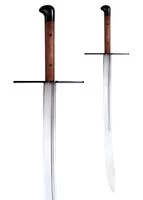 Cold Steel Grosses Messer mit ScheideIn deutschen Landen als Großes Messer bekannt, wurde dieses Schwert in den alten Zeiten in ganz Mittel- und Nordeuropa gleichermaßen von Junkern und Bauern benutzt, um Heim und Herd von Wegelagerern, Mördern, Briganten und sonstigen Gestalten von üblem Ruf zu schützen.Dank seiner stattlichen, breiten Klinge und seines großzügig ausgelegten Griffes konnte es sowohl ein- als auch zweihändig geführt werden. Damit war es sogar möglich, durch Kettenrüstung zu schneiden oder einen Mann mit einem einzigen Schlag in der Mitte durchzuhauen.Diese Version dieser schlichten und eleganten, dennoch besonders leistungsfähigen Waffe kommt aus dem Hause Cold Steel. Ihre aus Karbonstahl 1055 handgeschmiedete Klinge ist so scharf, dass man mit einem einzigen Hieb ein Telefonbuch zerschneiden kann.Die Parierstange und der stattliche Knauf sind aus gebläutem Stahl gefertigt. Die Griffschalen aus Palisander sind mit der bis zum Knauf durchgeschmiedeten Angel vernietet.Für Komfort und Sicherheit sorgt eine robuste, schöne Holzscheide mit schwarzem Lederbezug. Passend zu Parierstange und Knauf ist die Scheide mit einem Ortband und einem Mundblech aus gebläutem Stahl verstärkt.Technische Daten- Klingenmaterial: 1055er Karbonstahl- Gesamtlänge: ca. 107,3 cm- Grifflänge: ca. 26 cm- Klingenlänge: ca. 81,3 cm- Klingenstärke: ca. 5,1 mm- Gewicht: ca. 1814 g- Inkl. Lederscheide mit gebläuten Stahlbeschlägen- Herstellernr.: 88GMSEine preisgünstigere, gebläute Ausführung aus der „Man at Arms“-Kollektion von Cold Steel ist ebenfalls erhältlich. Artikelnummer: CST-88GMSM.