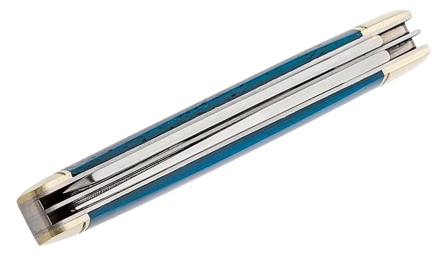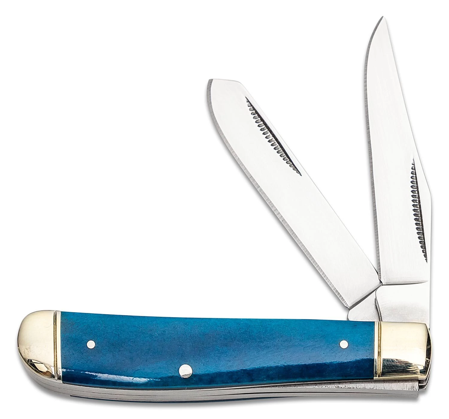 Die Klingen sind aus rostfreiem 8Cr13MoV-Stahl gefertigt, der leicht zu schärfen ist. Sie öffnen sich mit einer Kerbe in der Klinge und werden durch das Slipjoint-Federsystem in der offenen Position gehalten. Das Messer ist nicht mit einer echten Sicherung ausgestattet. Der strukturierte Griff ist aus echtem, gefärbtem Knochen gefertigt. Der robuste Griff ist für harte Arbeit ausgelegt, auch mit behandschuhten Händen.