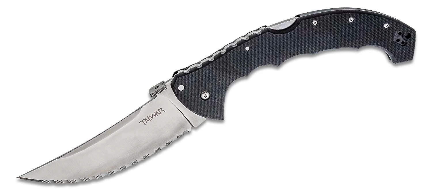 Auf den ersten Blick ist es klar, dass das Talwar-Messer von Cold Steel kommt. Es ist ein weiteres sehr interessantes Modell dieser amerikanischen Marke. Die markanten orientalischen Merkmale haben ihren Ursprung in den indo-persischen Waffen der gefürchteten Krieger – den Sikhs. Genau wie deren Talwar-Schwerter ist dieses Taschenmesser ein Meister im Schneiden durch alles, was sich Ihnen in den Weg stellt.